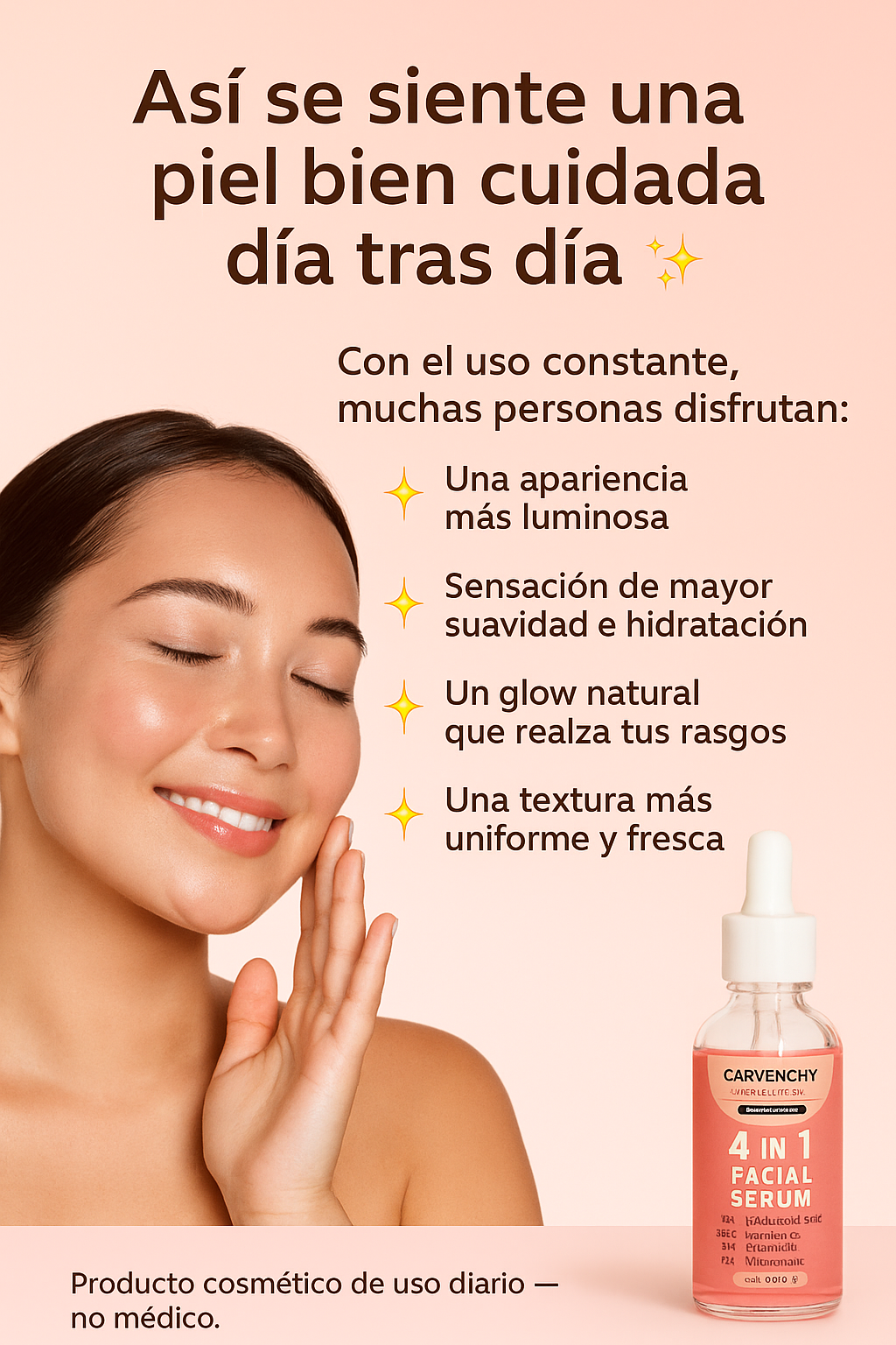 Este serum no promete milagros: ofrece un apoyo real y constante para que tu piel se vea y se sienta mejor.
